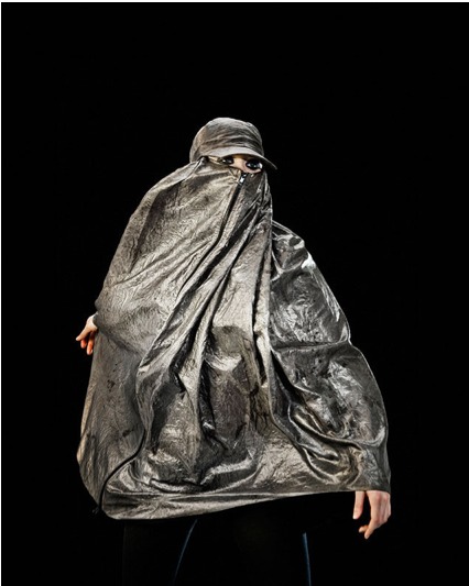 A l'heure où les drones se font de plus en plus nombreux aux USA, Adam Harvey propose la cape d'invisibilité, qui est en fait une burqa. Plus petite, la capuche anti-drones échappe à une détection aérienne. Le symbole politique y prend toute sa force. Il s'agit clairement de sauver sa vie, Adam Harvey l'explique dans la vidéo (bas de page), ce n'est pas pour tout le monde.